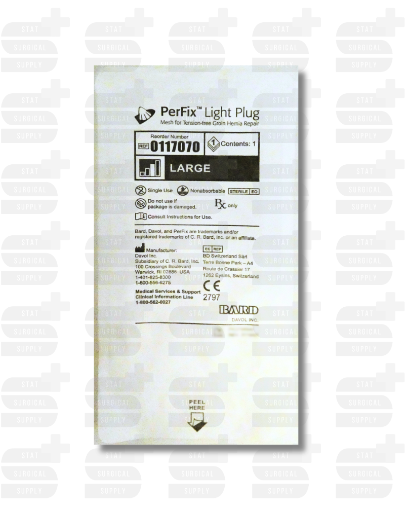 The Bard™ PerFix™ Light Plug is designed for tension-free preperitoneal inguinal hernia repair, offering a lightweight alternative to the classic PerFix™ Plug. Made of nonabsorbable polypropylene mesh, it provides reliable reinforcement with reduced implanted material—ideal for patients requiring minimal foreign body load. This large, sterile, single-use plug conforms easily to anatomical defects and promotes healthy tissue integration for secure, long-lasting results. Optimized for preperitoneal and open hernia repair techniques, the PerFix™ Light Plug combines flexibility, strength, and proven clinical performance.