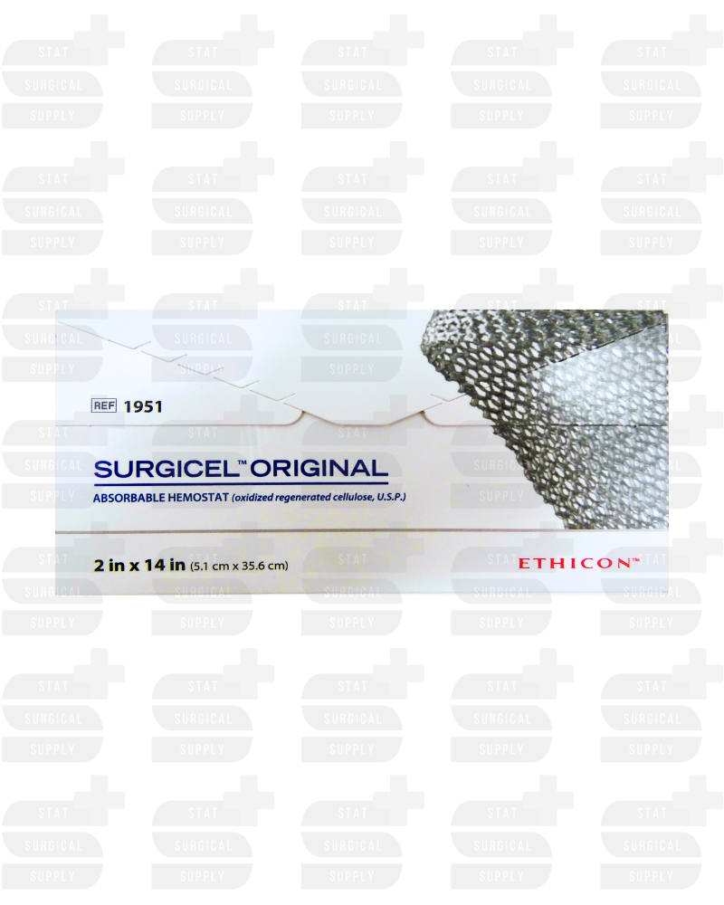 The Ethicon SURGICEL® Absorbable Hemostat (1951) is a sterile, loose-knit hemostatic agent made from oxidized regenerated cellulose (ORC). Designed for surgical use, it provides effective control of capillary, venous, and small arterial bleeding when traditional ligation or cauterization methods are impractical or insufficient. This ready-to-use absorbable hemostat delivers rapid hemostasis in cases of continuous oozing. It is fully absorbable within 7–14 days and sterilized by irradiation for safe, consistent performance. SURGICEL® hemostats are trusted worldwide for their versatility across open and minimally invasive surgical specialties.