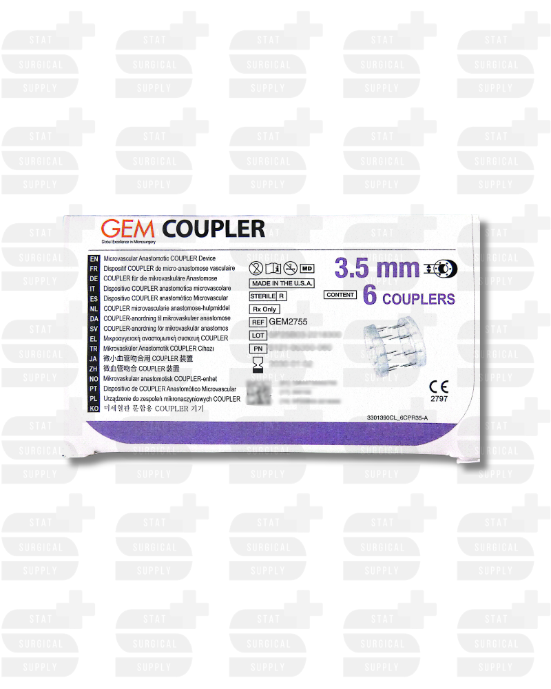 GEM2755 The Synovis GEM2755 Microvascular Anastomotic Coupler is a sterile, single-use device designed to streamline end-to-end venous and arterial anastomosis in microsurgical procedures. With a 3.5 mm coupler diameter, this device is ideal for medium-caliber vessels commonly encountered in free flap transfers, breast reconstruction, and complex reconstructive microsurgery.