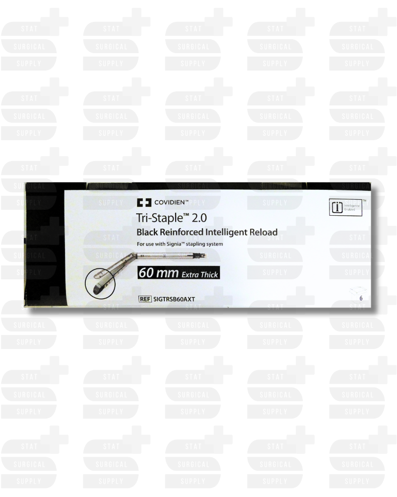 The Covidien SIGTRSB60AXT Intelligent Reload is a 60 mm Tri-Staple™ 2.0 black reload engineered specifically for extra-thick tissue applications, offering unmatched performance within the Signia™ powered stapling platform. Designed with a reinforced tip for enhanced maneuverability and precise tissue engagement, this intelligent reload supports demanding procedures where control and tissue security are critical.